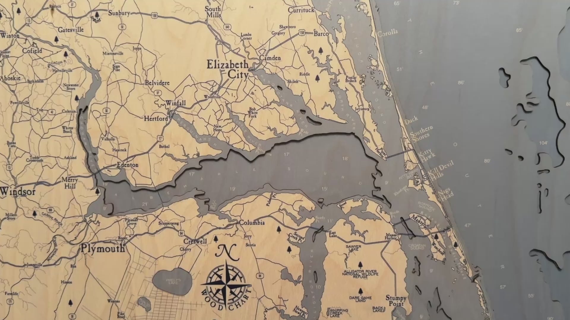 Outer Banks, North Carolina UV Nautical Wood Chart, Large, 24.5" x 31"