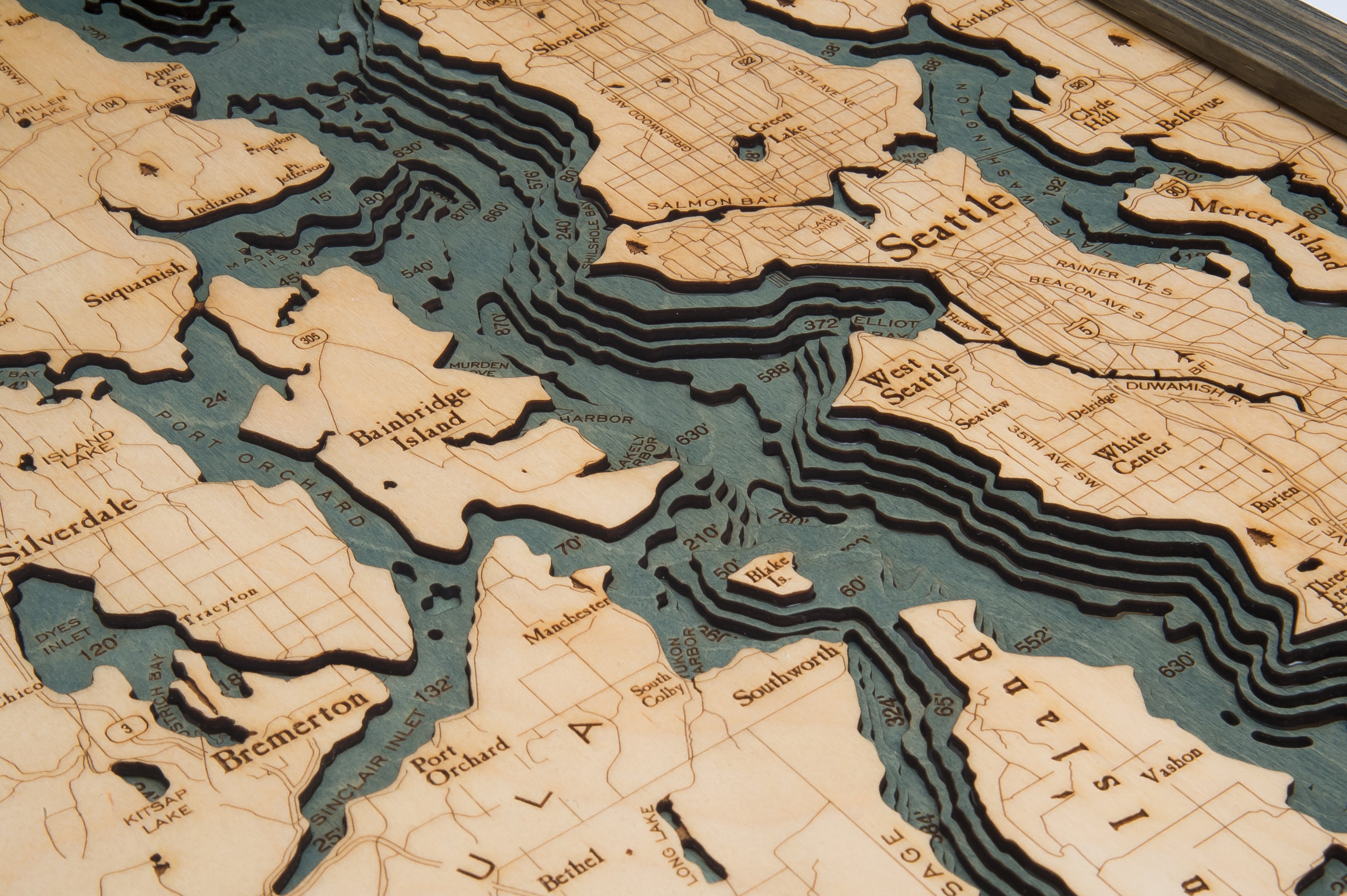 Puget Sound, Washington 3-D Nautical Wood Chart, Large, 24.5" x 31"Washington