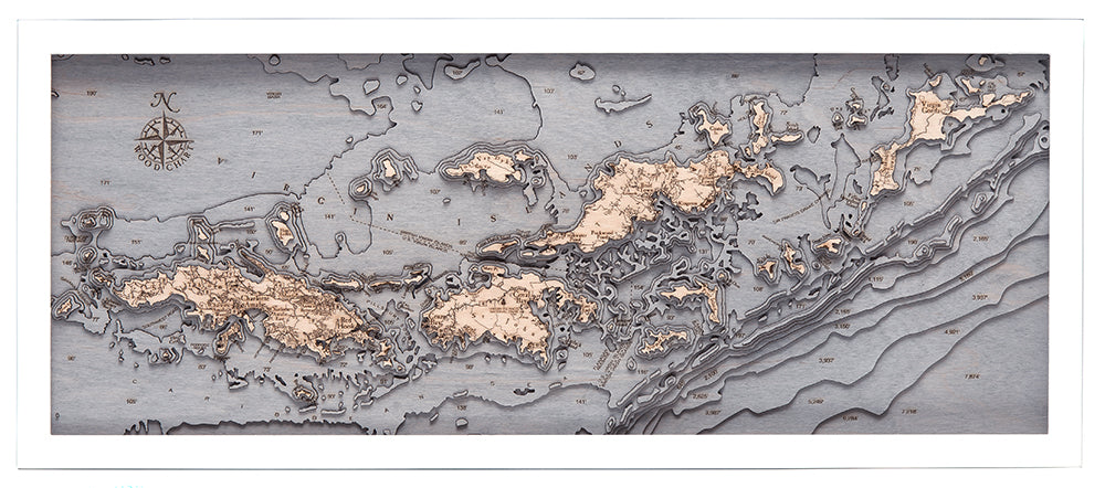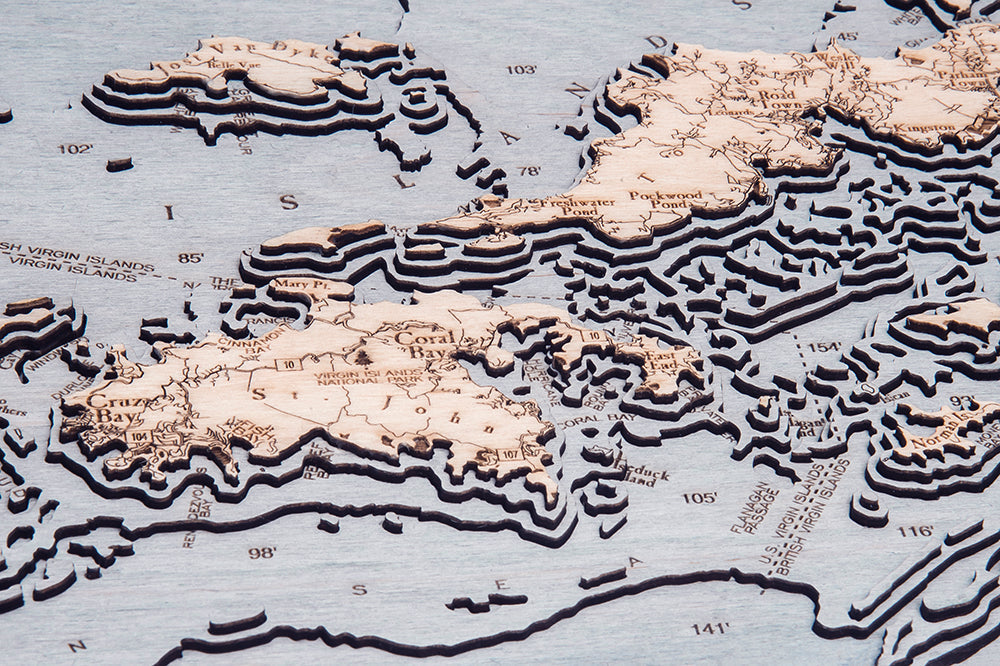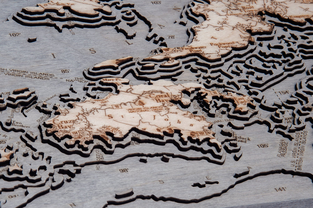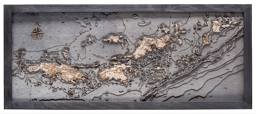 British & US Virgin Islands 3-D Nautical Wood Chart, Medium, 13.5" x 31"