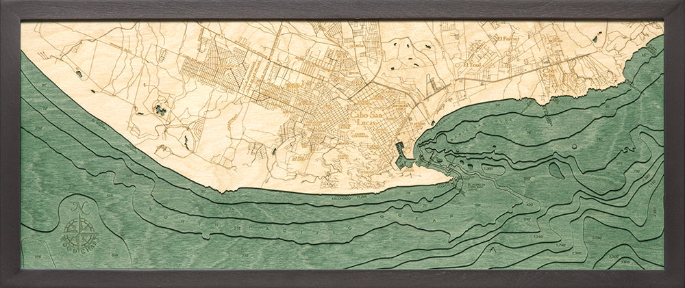 Cabo San Lucas 3-D Nautical Wood Chart, Medium, 13.5" x 31"