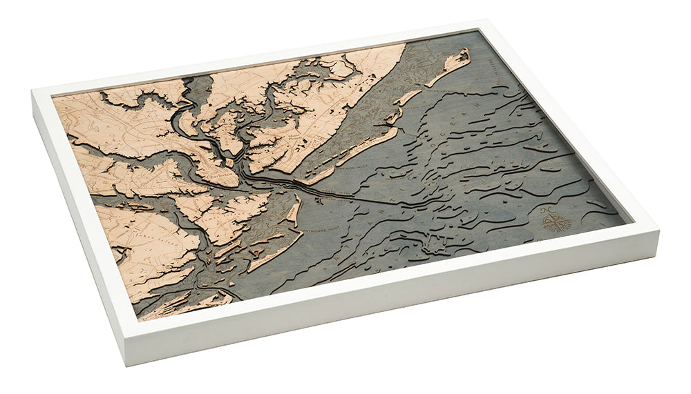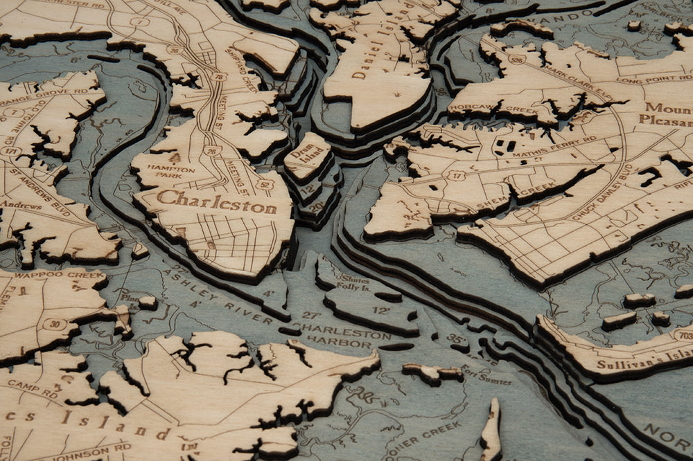 Charleston, South Carolina 3-D Nautical Wood Chart, Large, 24.5" x 31"