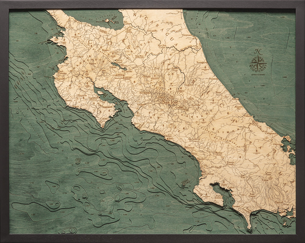 Costa Rica 3-D Nautical Wood Chart, Large, 24.5" x 31"