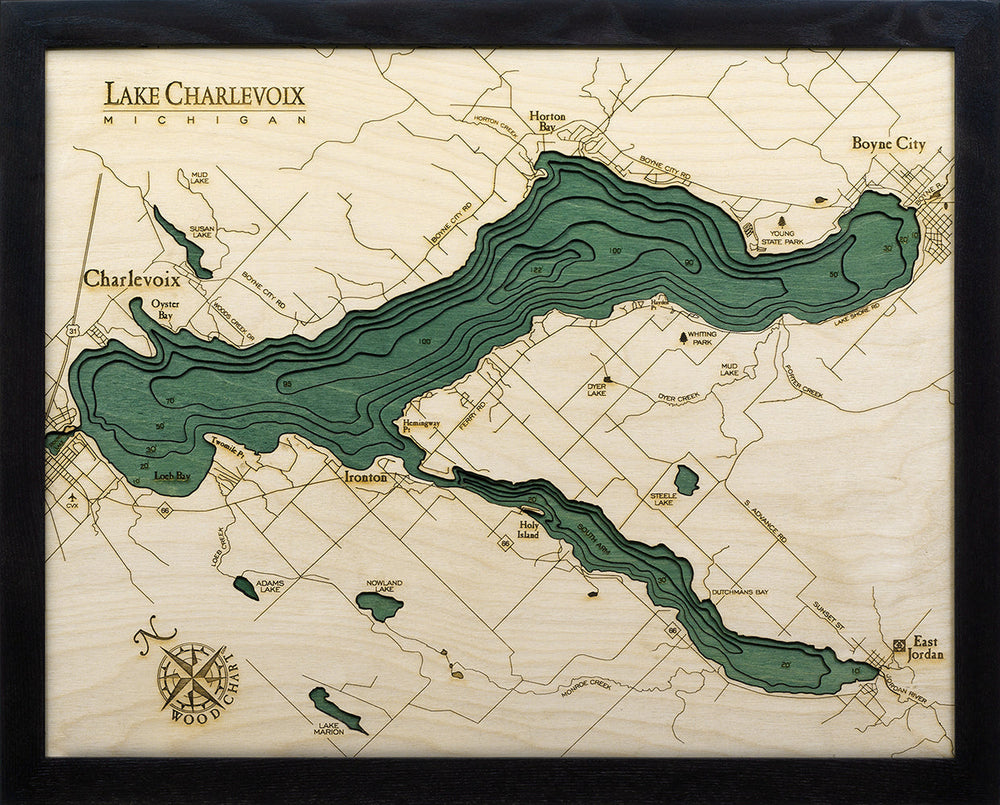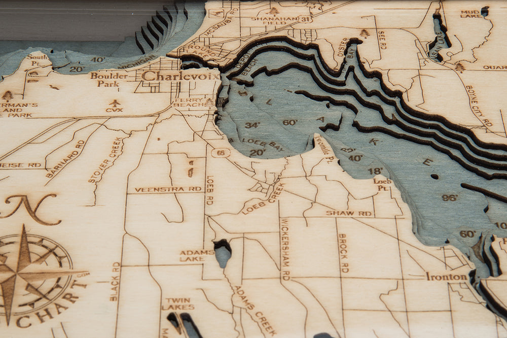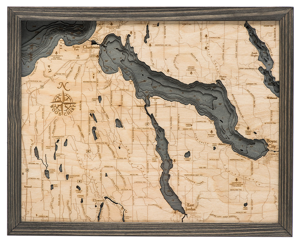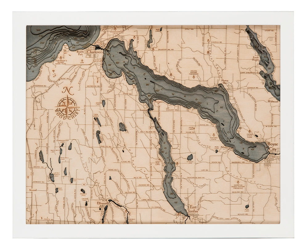 Lake Charlevoix, Michigan 3-D Nautical Wood Chart, Small, 16" x 20"