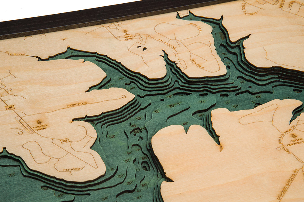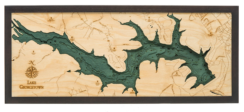 Lake Georgetown, Texas 3-D Nautical Wood Chart, Medium, 13.5" x 31"