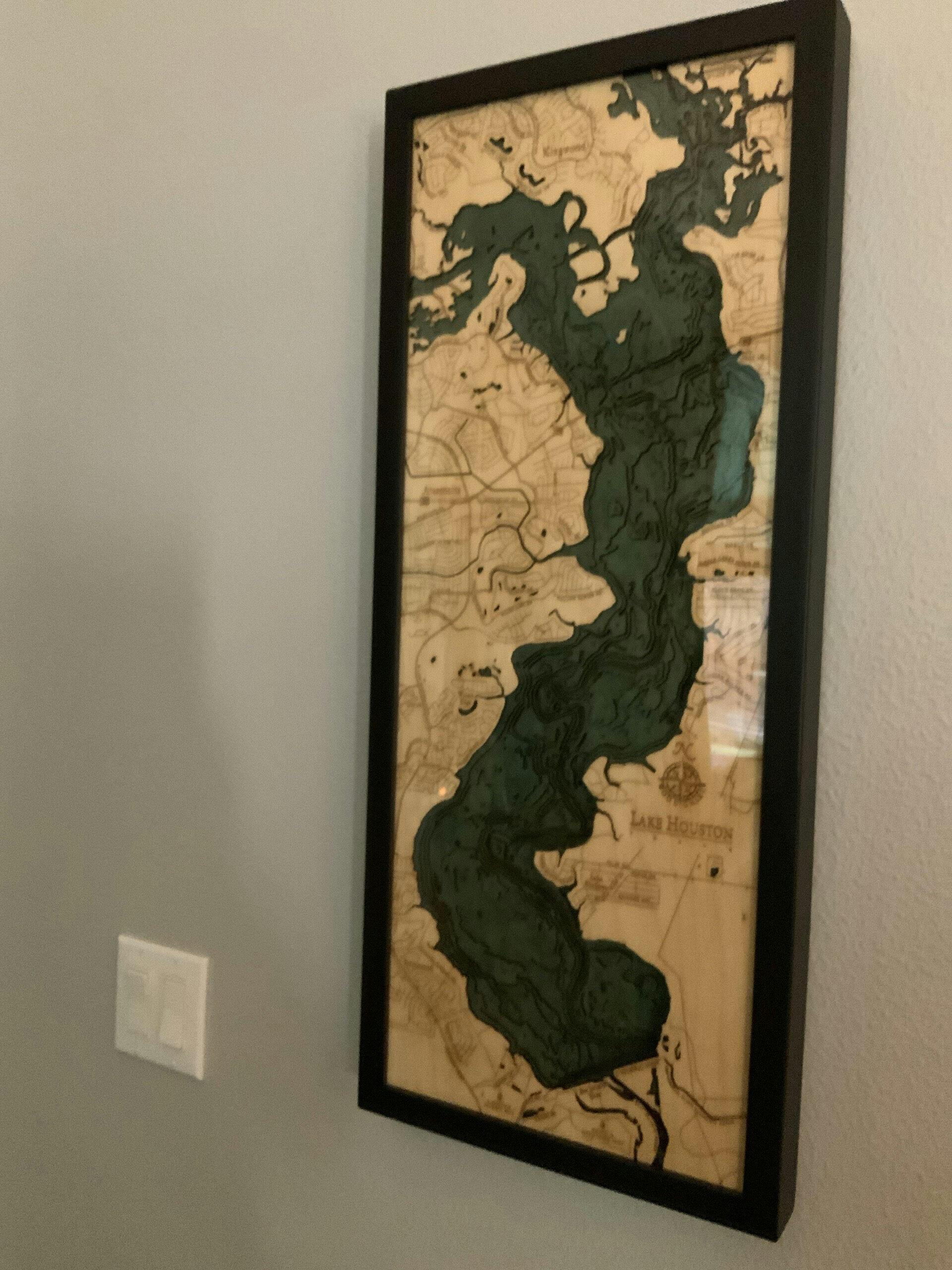 Lake Houston, Texas 3-D Nautical Wood Chart, Medium, 13.5" x 31"