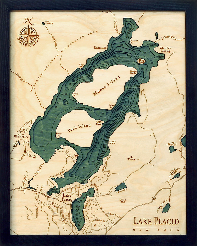 Lake Placid, New York 3-D Nautical Wood Chart, Small, 16"x 20"