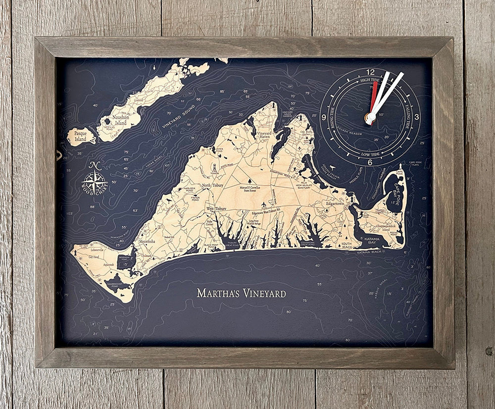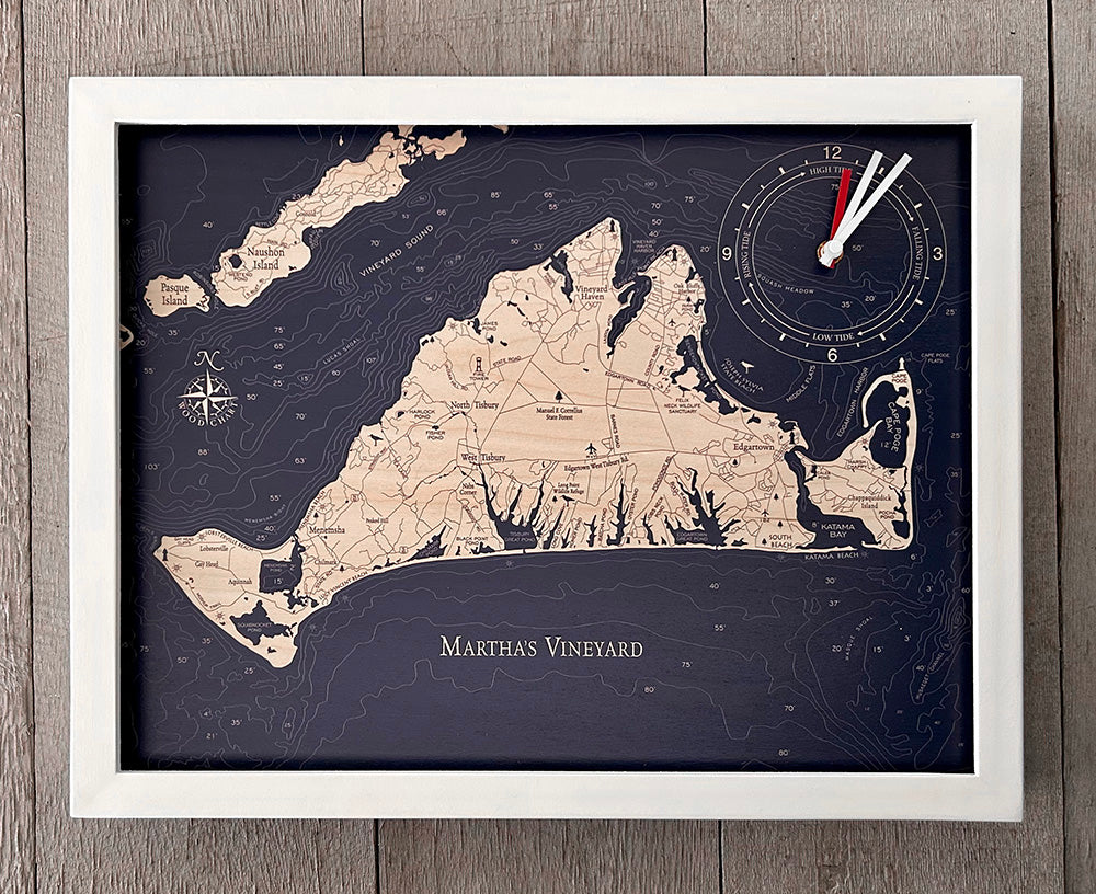 Nautical Framed Tide Clock of Martha's Vineyard Details: