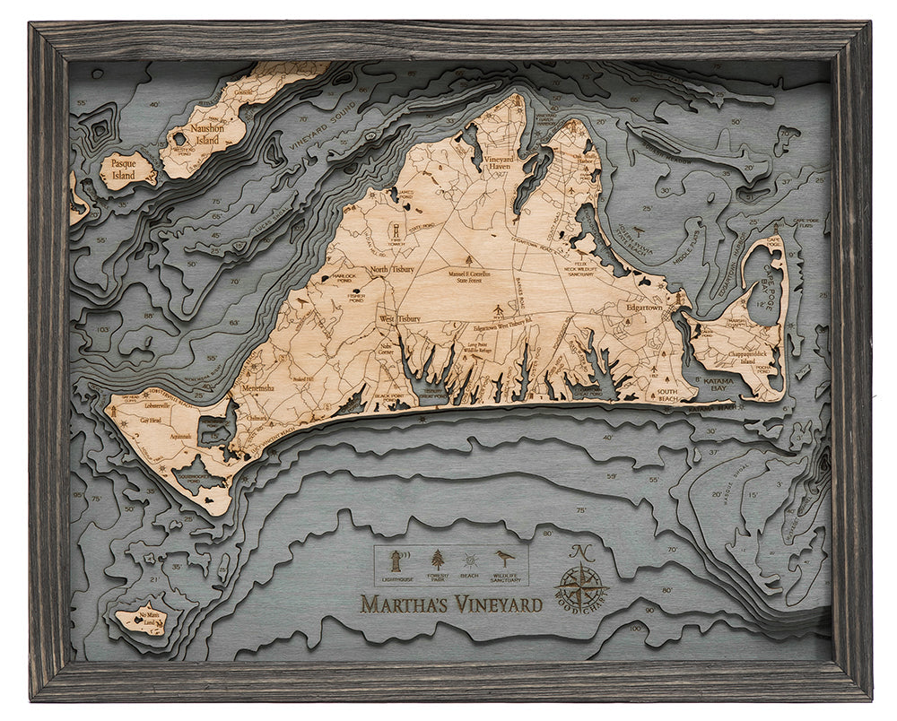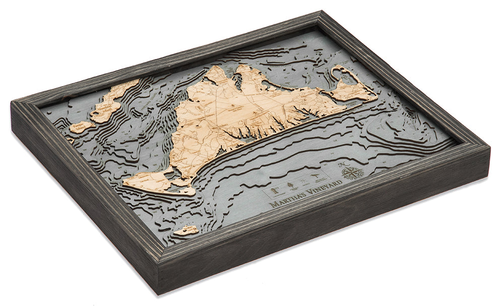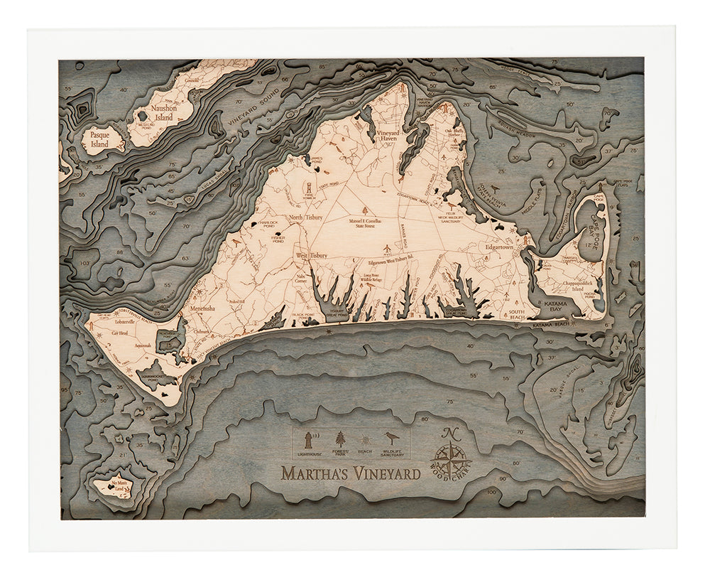 Martha's Vineyard, Massachusetts 3-D Nautical Wood Chart, Small, 16" x 20"
