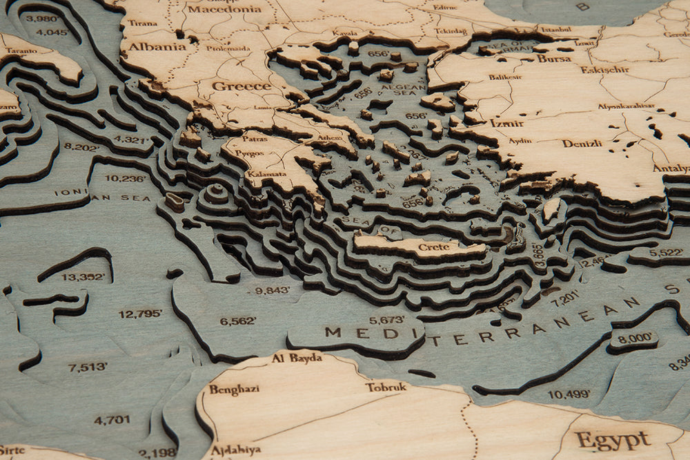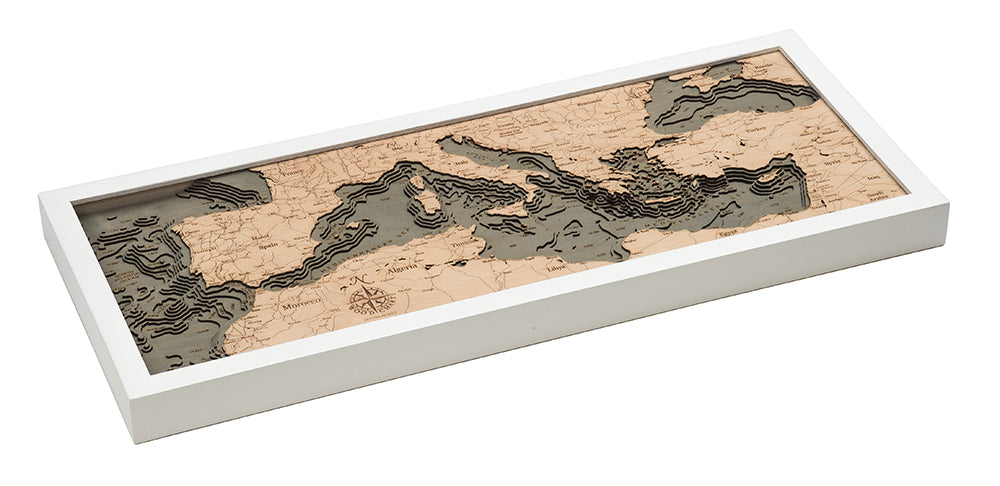 Embrace the beauty of the Mediterranean Sea with this nautical 3D wood map.