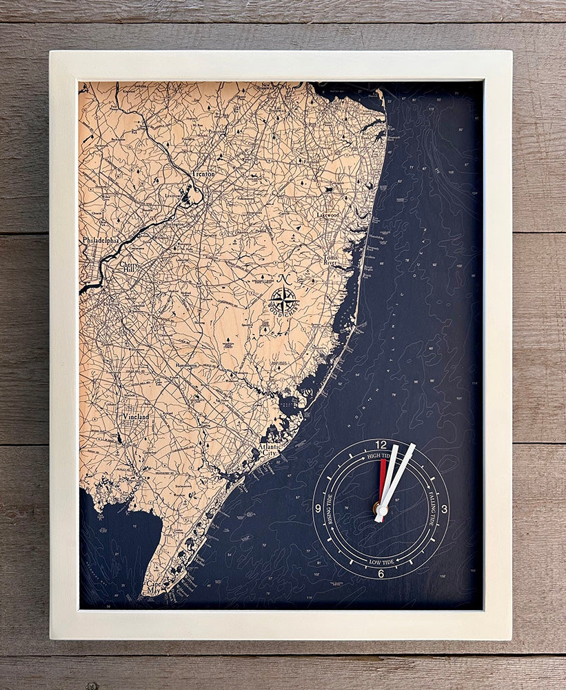 Nautical Framed Tide Clock of The New Jersey Coast Details:
