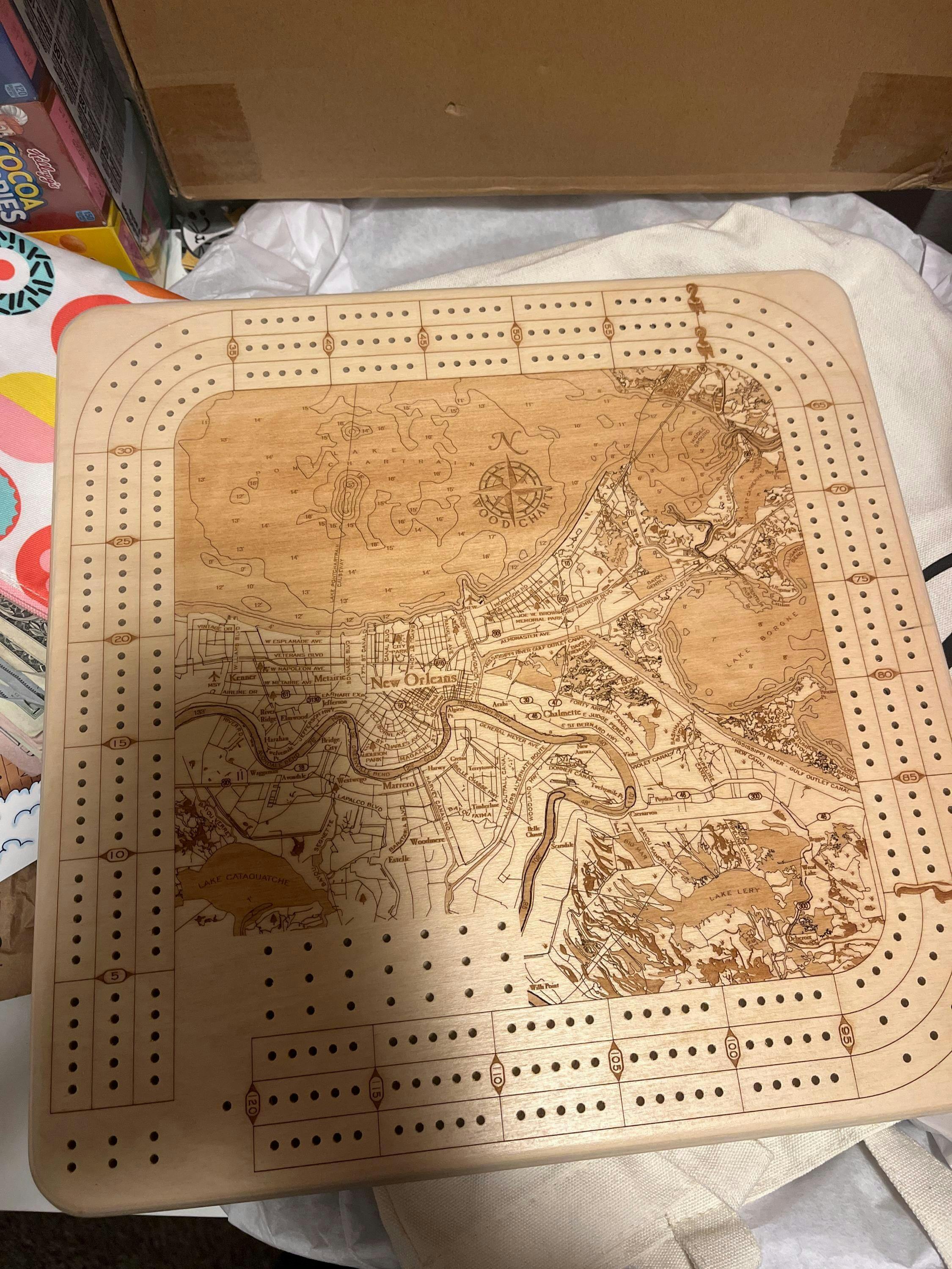 Game Night will never be the same after you arrive with your New Orleans cribbage board, intricately detailed with all the popular sights and waterways of the historic city. Your opponent will be distracted by the wood map of the popular party destination and conversation will ensue, allowing you to clean up on points and impress with your topographical knowledge of NOLA.