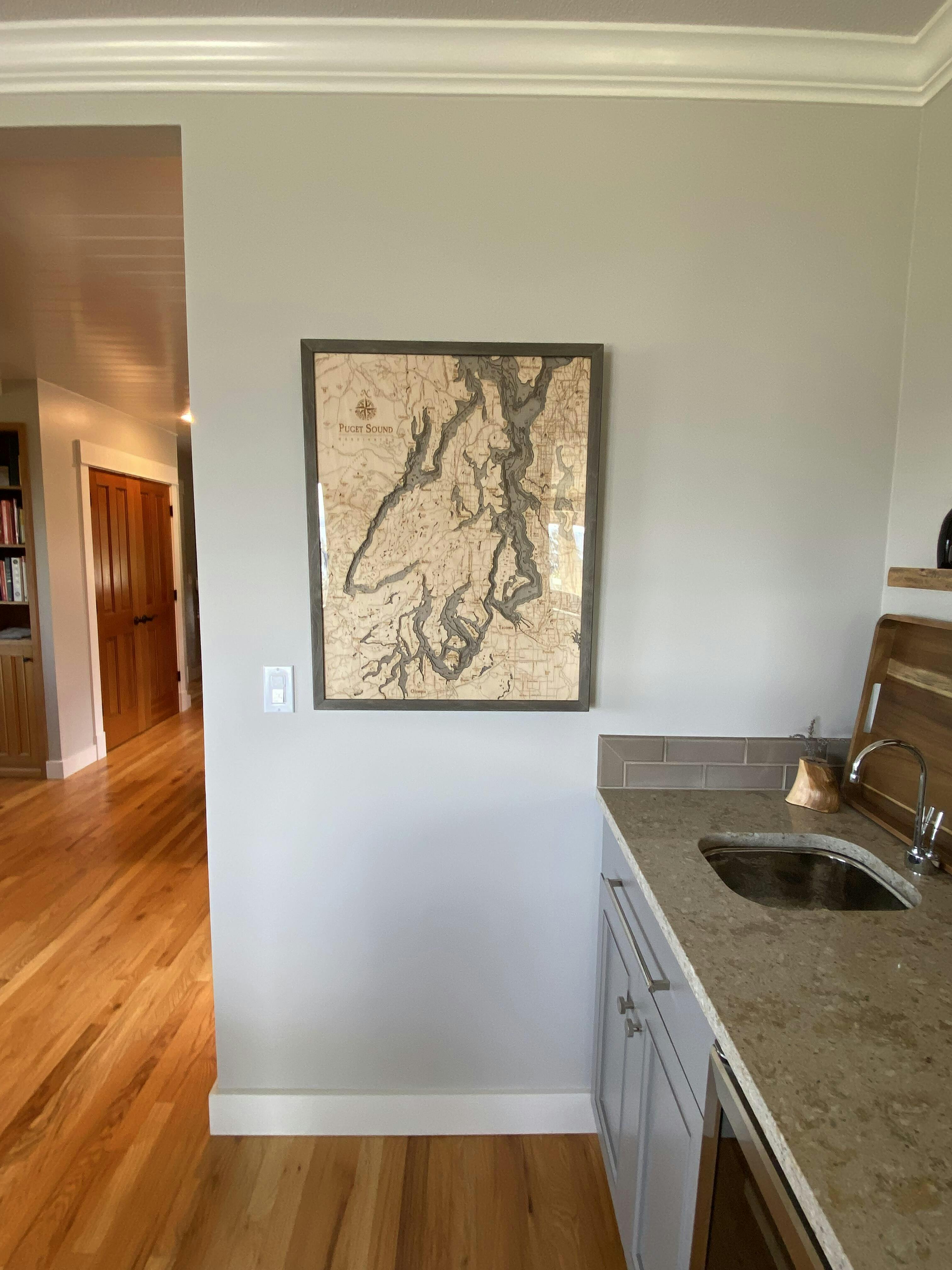 Puget Sound, Washington 3-D Nautical Wood Chart, Large, 24.5" x 31"