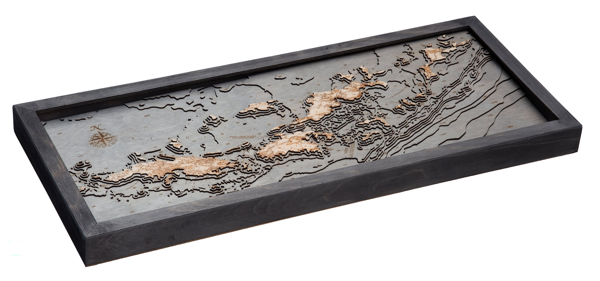 British & US Virgin Islands 3-D Nautical Wood Chart, Medium, 13.5" x 31"